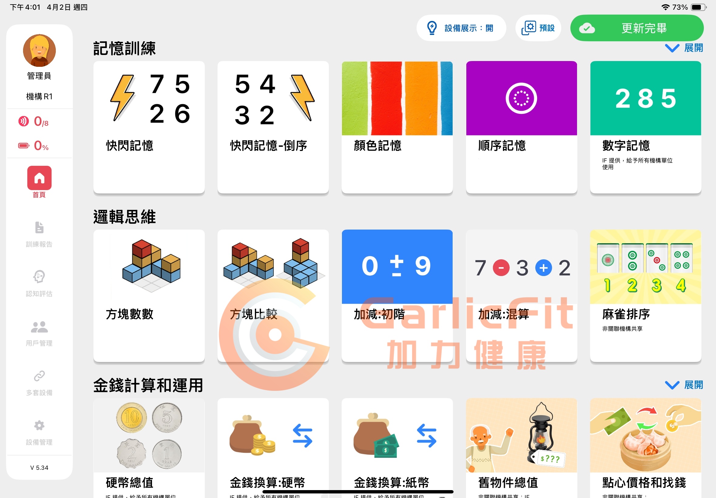 加力健康便携式认知评估训练系统云端数据管理平台让服务更高效省心,评估与训练数据自动存储、备份与分析,支持长者健康档案统一管理与康复效果长期追踪,无需人工手动记录。设备仅需搭配平板即可快速部署,不占多余场地,无需专业人员全程值守,大幅降低机构运营成本,让专业认知康复服务 “轻” 而易举落地生根。