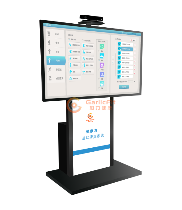 “爱康力运动康复”是一项用于整体功能训练及任务导向康复训练的智慧康复系统,它可以通过3D动态捕捉器对训练者的康复训练动作进行识别判断,进行关节活动度的准确静态数值测量和动态曲线测量及游戏互动中的识别。以此达到训练者关节及认知康复训练的目标。