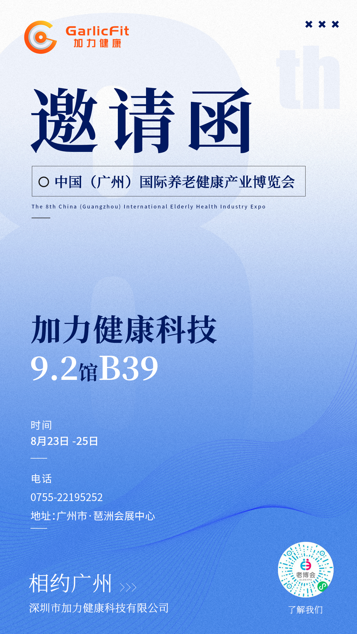 我们满怀激动地向您宣布,2024年第八届中国(广州)国际养老健康产业博览会即将于8月23日至25日盛大启幕!在这场汇聚全球养老健康创新成果的盛会上,加力健康将携其明星智能情景互动康复产品系列,在9.2馆B39展位恭候您的光临。
