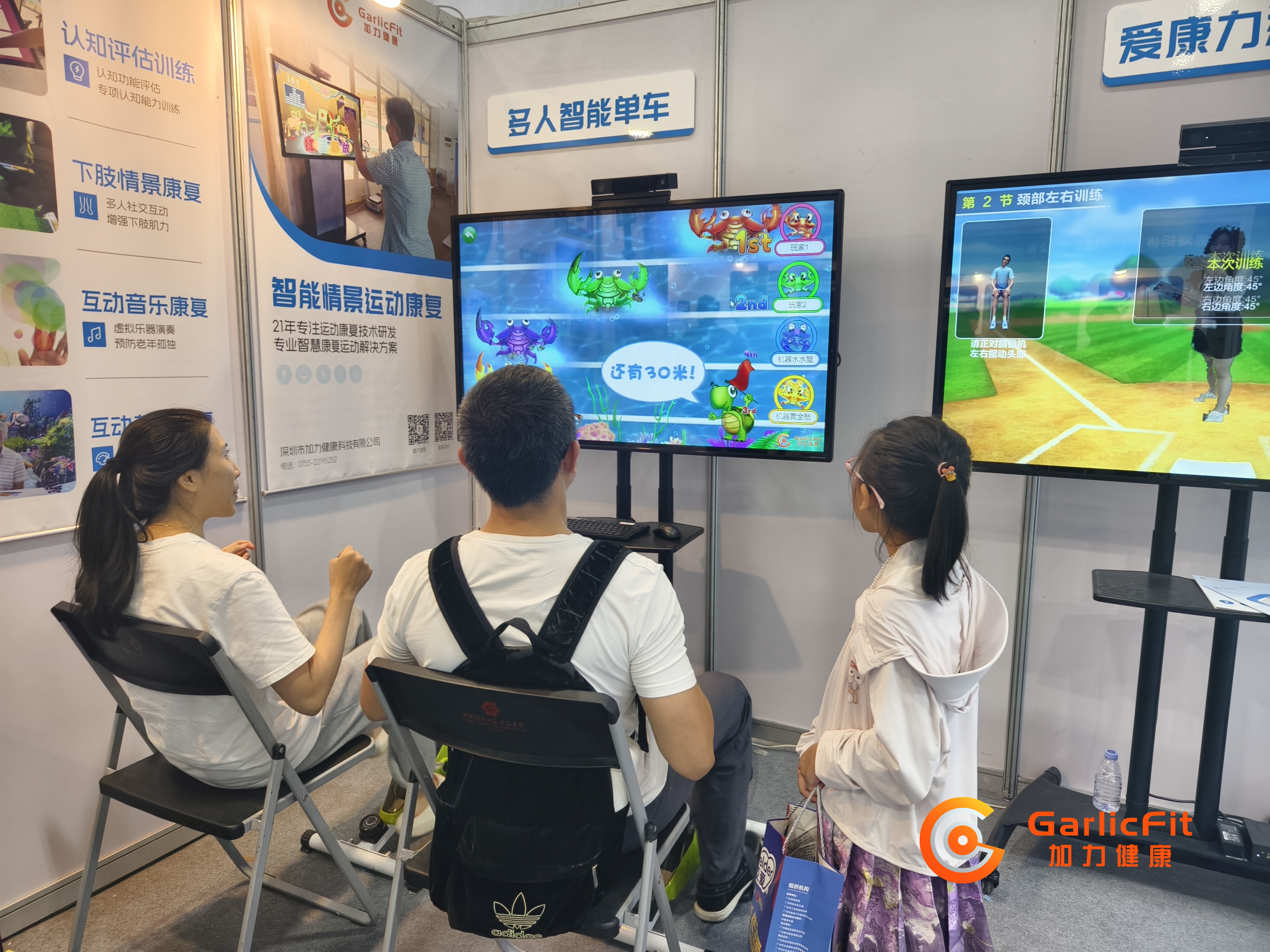 本次展会,加力健康携旗下多款智能情景互动康复产品惊艳亮相,其中爱康力运动康复系统、认知评估训练系统、以及多人智能单车系统更是成为了全场的明星产品,吸引了无数目光。