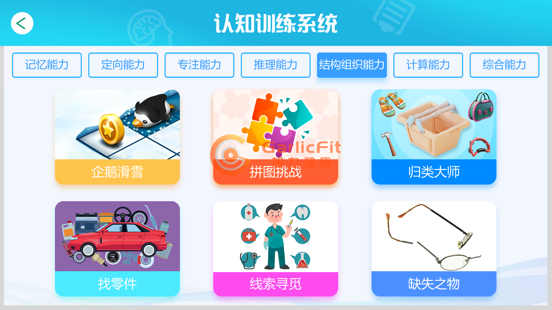 加力健康认知评估训练系统的训练板块设计得既科学又有趣,旨在通过多样化的训练方式,全面提升长者的多项认知功能。例如,通过记忆宫殿、数字迷宫等游戏,可以有效锻炼记忆力和空间认知能力;而逻辑推理题、脑筋急转弯等,则能增强逻辑思维和问题解决能力。这些训练不仅能够有效延缓认知衰退,还能让长者在享受乐趣的同时,感受到自我成长的喜悦。