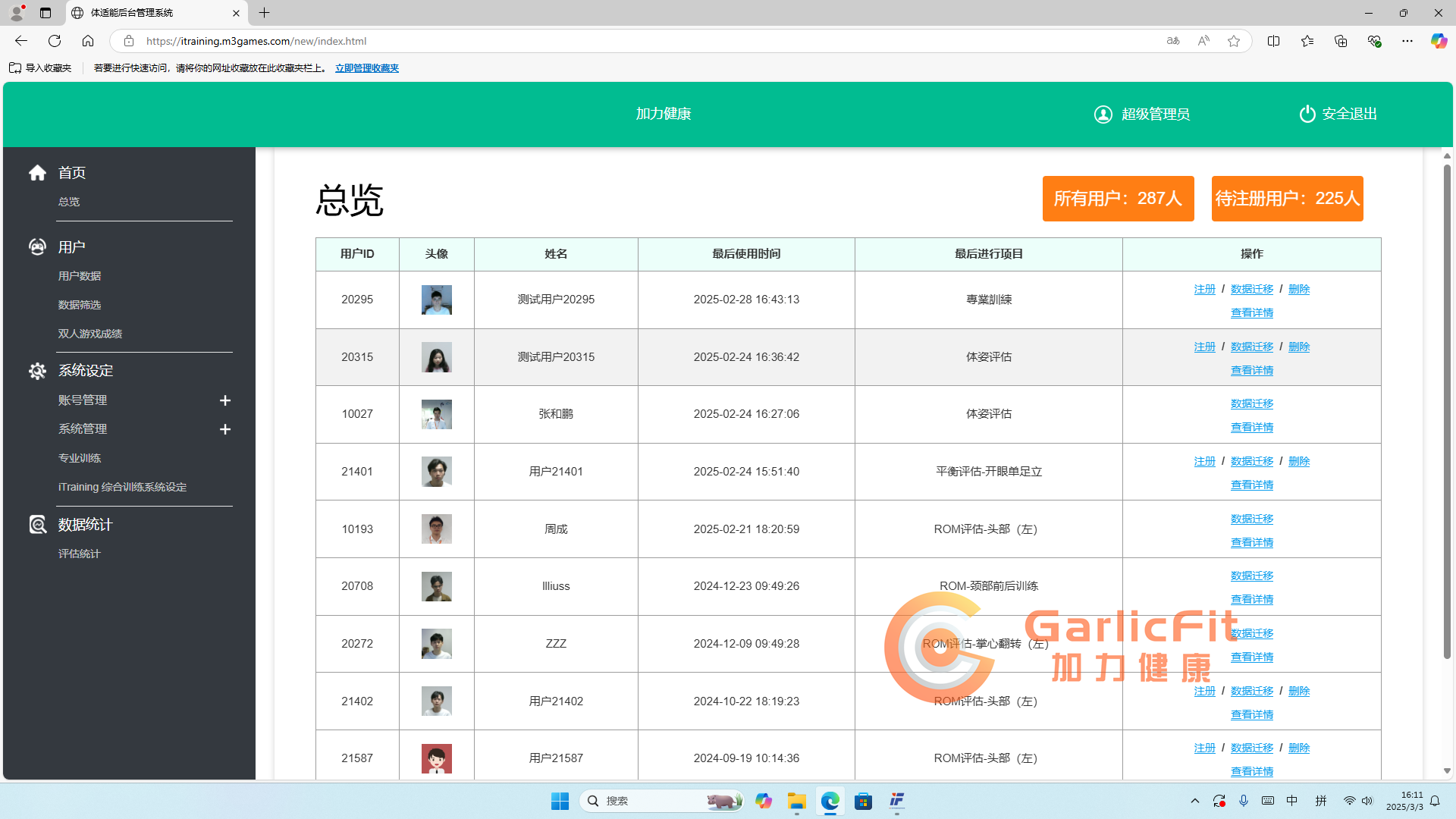 专属后台为高校实训室量身定制:集中存储所有实训数据,包括学生评估报告、处方设计、训练指导记录等,教师可随时查阅复盘,精准掌握每位学生的实操短板;支持多维度数据统计,能清晰呈现实训室使用频次、热门实训项目等运营情况,为教学计划优化提供数据支撑;同时可模拟不同康复场景的案例数据,满足批量教学与个性化实训需求,大幅提升实训室利用率。