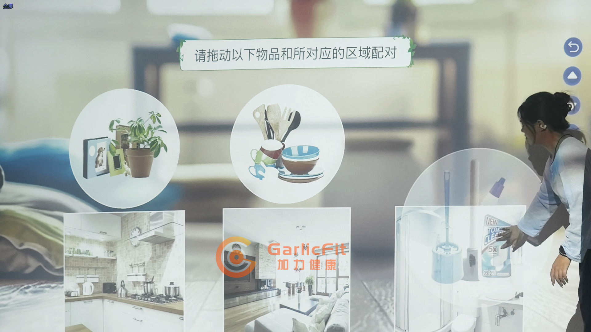 通过墙面投影技术,加力健康认知训练互动墙将各类认知训练内容投射到墙面,形成可触摸、可互动的沉浸式学习空间。长者无需手持设备,只需通过自然的肢体动作,即可参与情景互动与问答挑战。