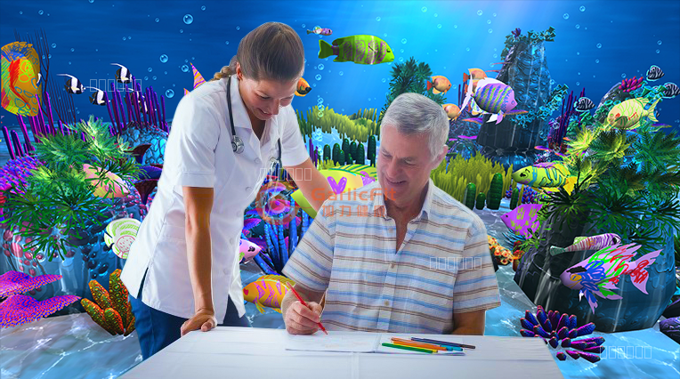 “创意美术复康系统”通过先进的影像辨识及3D多媒体互动技术,将康复者的美术创作变成栩栩如生的3D动画,使其感受互动美术的神奇。康复者用画笔对纸上的图案进行绘画和着色,描绘出他们心中的图像,再通过扫描器扫描绘画作品,2D绘画秒变3D动画。“互动美术康复” 能把康复者的意志和注意力吸引到艺术活动的情境之中,有效地帮助他们抒发和投射个人内心压抑的情感,获得愉悦感和满足感。