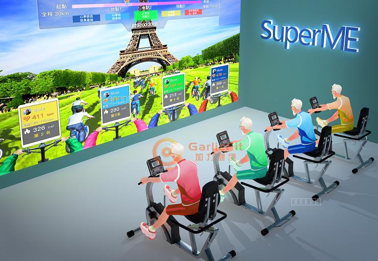 通过虚拟现实技术和动感单车训练相结合,让使用者在运动过程中与虚拟现实进行沉浸式互动训练,实时评估老年人心肺系统和运动系统,确保运动的安全性和有效性。