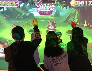 通过大屏幕上的互动游戏,促进训练者利用上肢投球砸击墙面,反复操作完成游戏任务。通过这种互动活动,让老人的肩关节、肘关节、腕关节、手指关节得到训练。