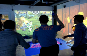 “上肢康复训练系统” 利用互动投影等多媒体技术,通过在墙面投影出丰富的互动训练内容,让训练者利用上肢与墙面互动内容互动,通过这样趣味的运动方式起到上肢康复训练,以此来达到上肢关节肌力和关节灵活度的康复目标。