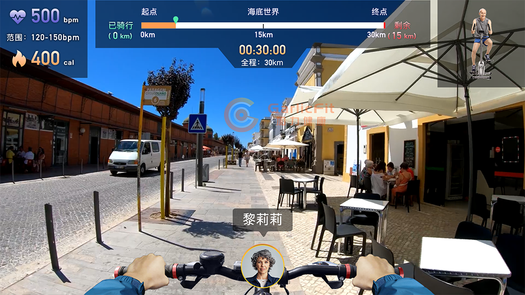 “智能单车”将自行车骑行搬到室内,通过互动多媒体技术,打造一个沉浸式的骑行空间,让老年人在骑行的过程中仿佛置身在街头、路边,还有世界著名景点,让老年人足不出户“环游世界”。