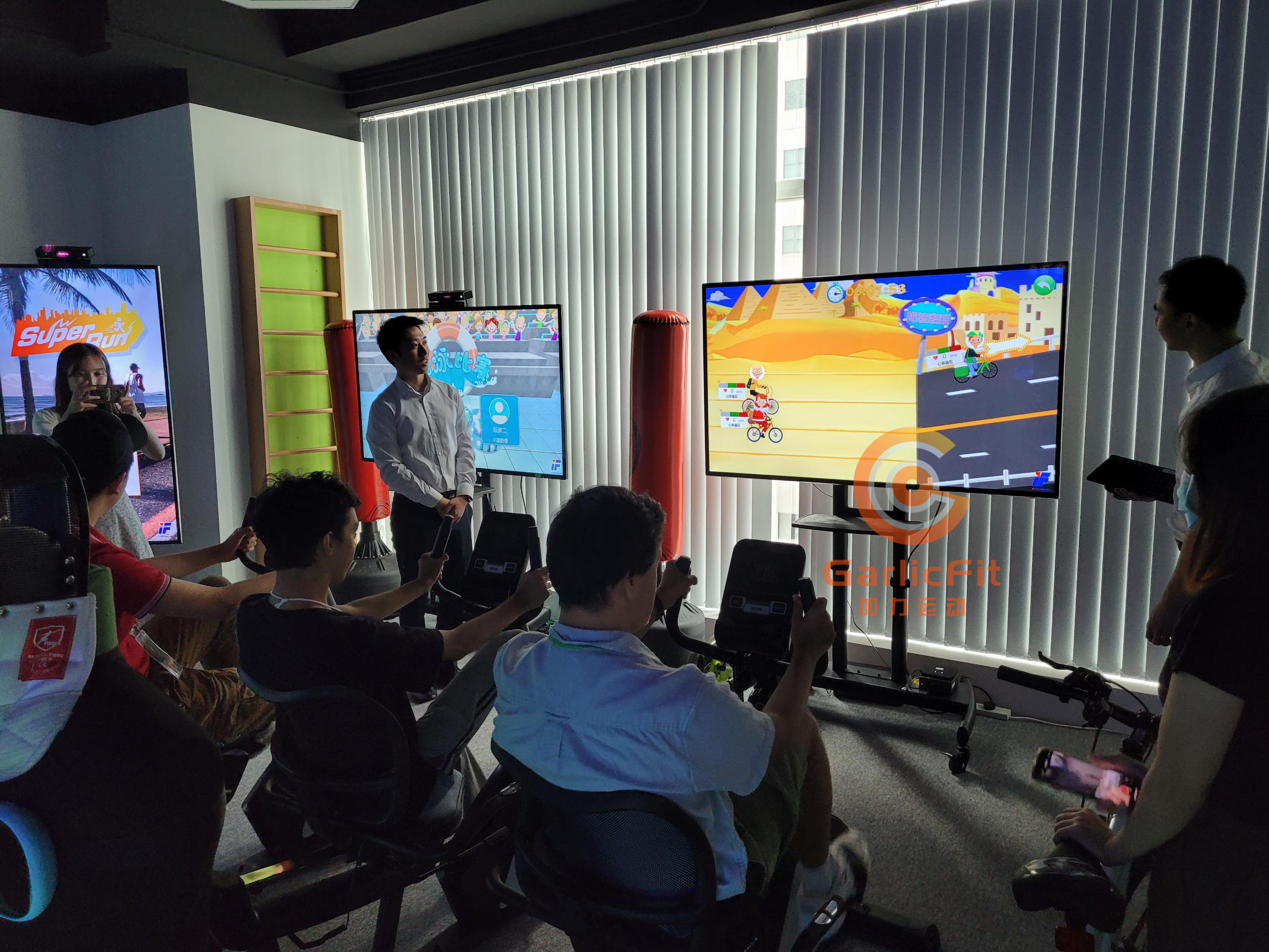 除了基本的下肢运动康复,加力健康AI多人智能单车还支持多人互动功能。老年人可以通过连接互联网,与其他用户进行健身比赛、PK等活动。这种社交互动不仅增加了健身的趣味性,还使老年人能够与其他人分享健康心得和经验,建立起社区中的小圈子,增加了交流和互助的机会。